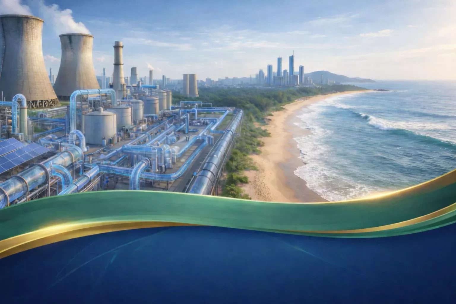 The desalination plant will utilize seawater reverse osmosis (SWRO) technology, a proven and energy-efficient process widely adopted for large-scale desalination projects worldwide. The system works by applying controlled pressure to seawater, forcing it through specialized semi-permeable membranes that separate dissolved salts and impurities from water molecules. This process produces a reliable stream of potable-quality water, along with a concentrated brine stream that is managed in accordance with environmental standards